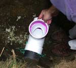 This new pvc tee replaced the old pipe seen in the first picture. We decided that 2" wasn't wide enough, and went with a 4" wide opening. |